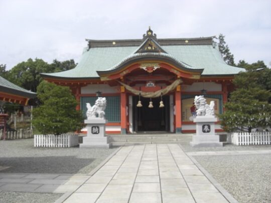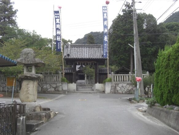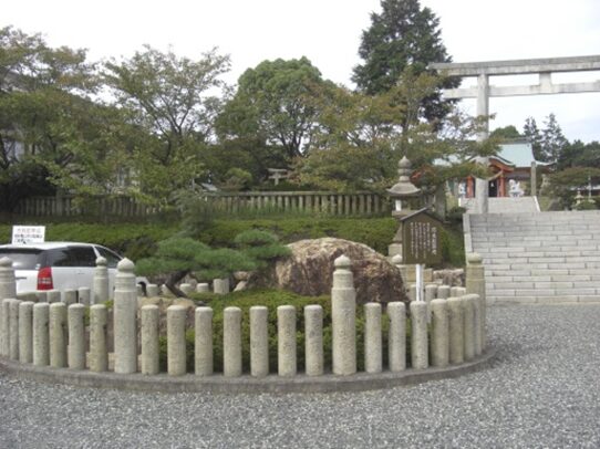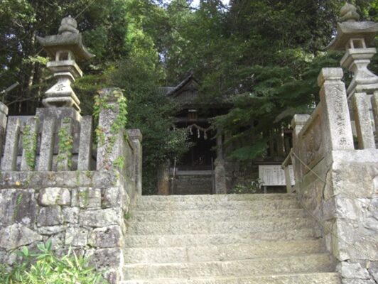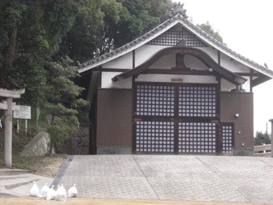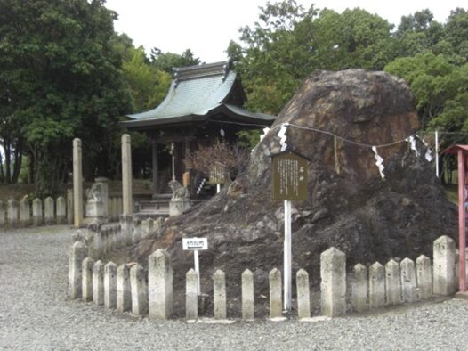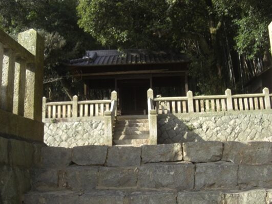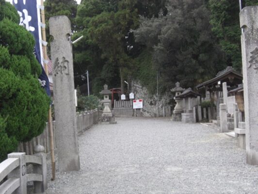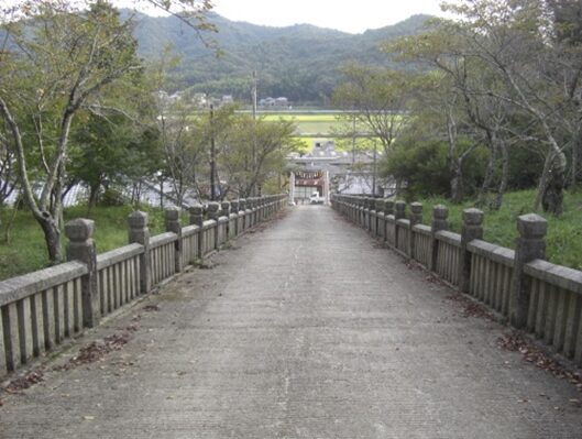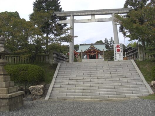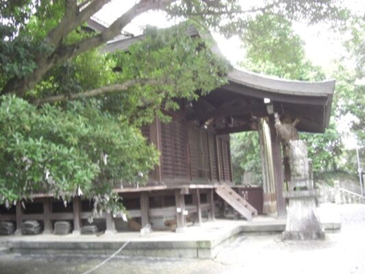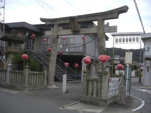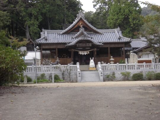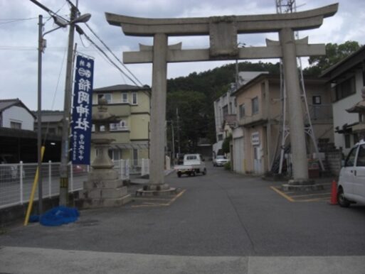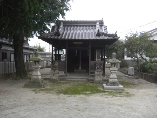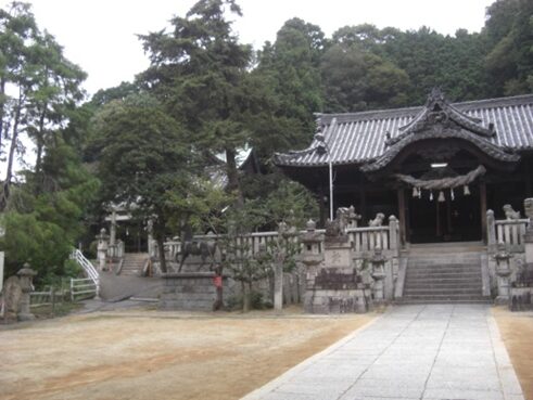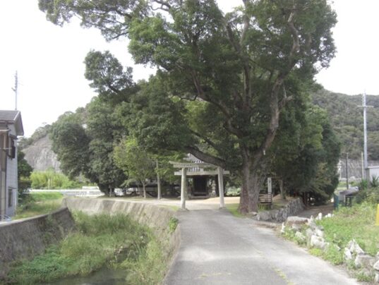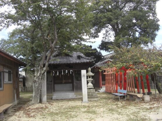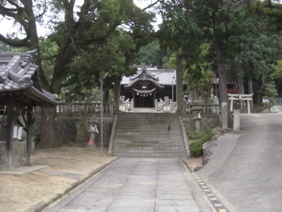 稲岡山の南麓に鎮座、射目崎神社はさらに北に行ったところにあったが、応永の頃(1395~1428)両社を合わせて一社殿に祀られたと伝わる