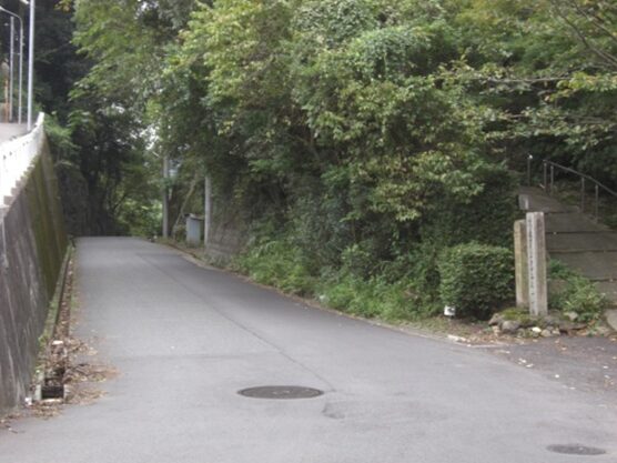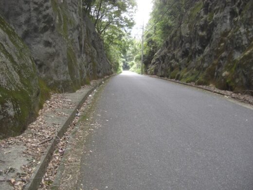 その先250m程進むと道は分岐していますが左の道が旧道です