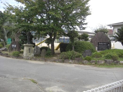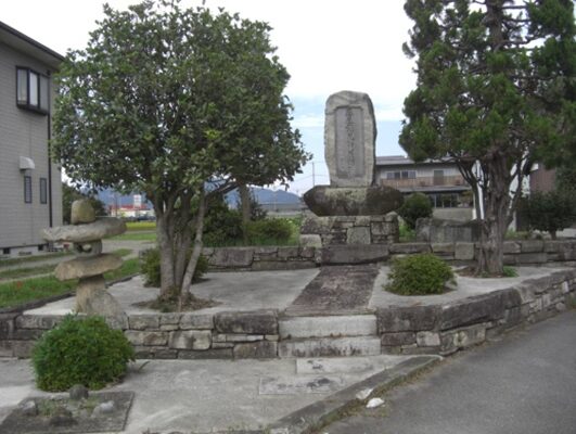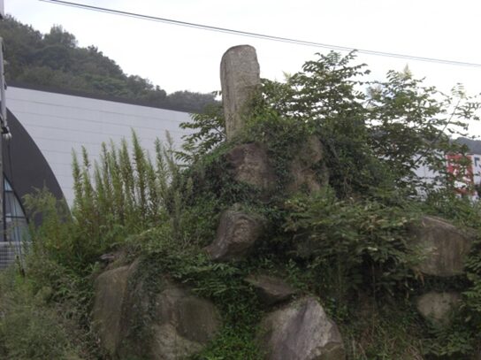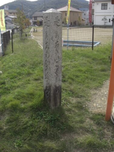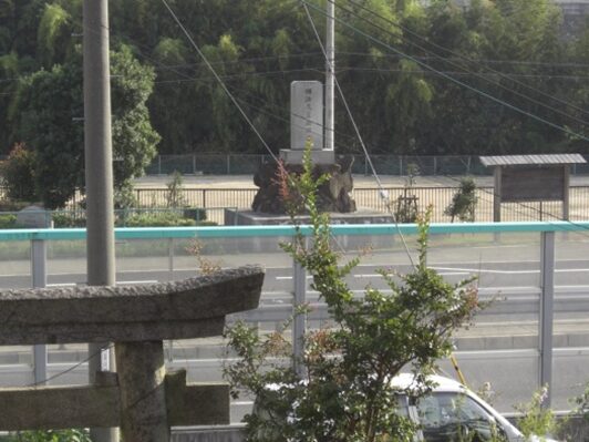 金刀比羅神社の高台より国道の南側の鶴亀池を見ると、池の袂に大きな石碑が建っています。