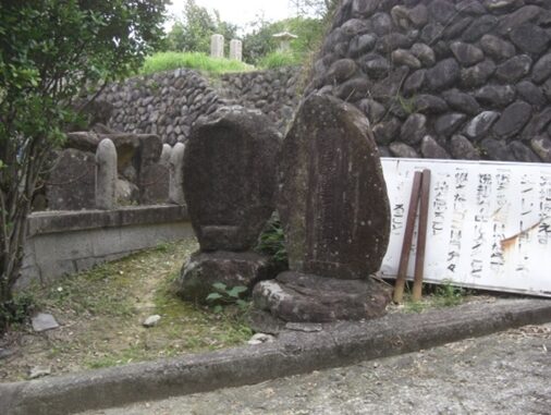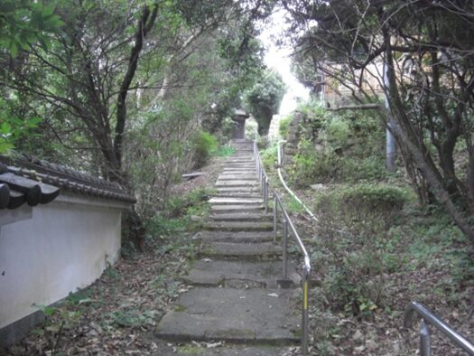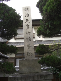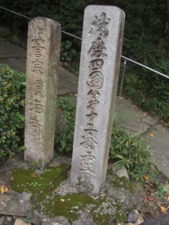 ホテル手前を左に折れるとすぐ右の山上に順海寺がありその石段を上るところに案内石碑が二基建っています。