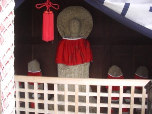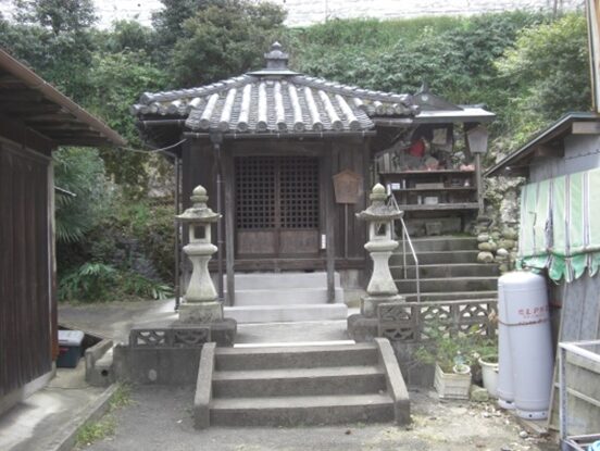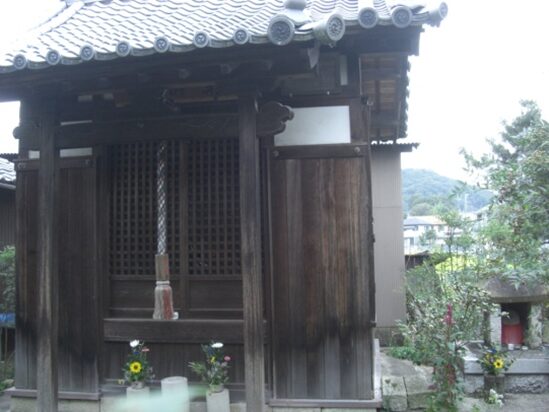 街道に戻り小さな川を渡ります青山五丁目15の右手民家の裏に 薬師堂