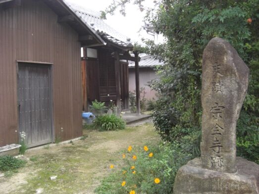 薬師堂の入り口に建つ史跡 宗全寺跡石碑