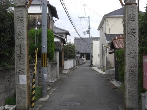 その先を進むと右に常夜灯が二基あり天満神社の参道があります