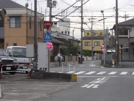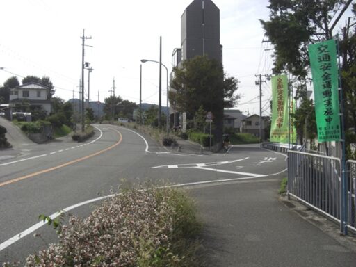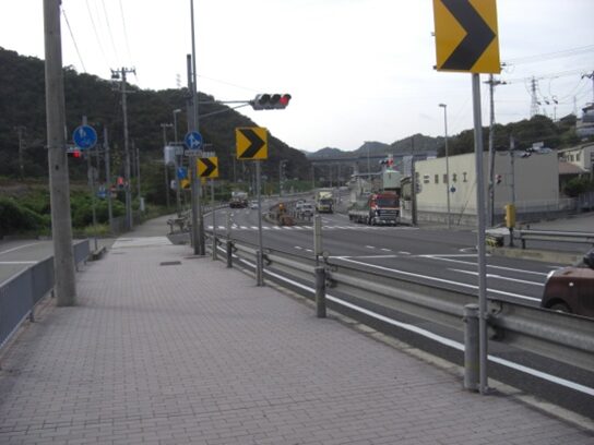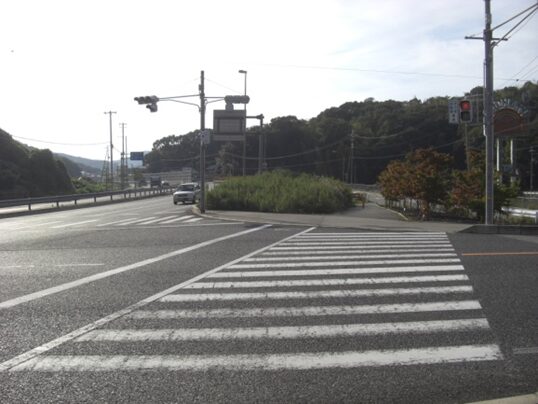 龍野町6丁目の真っ直ぐの街道を進むと新しい車道に出ます。西側に横断したいのですが、渡れないので少し左側の信号交差点へ迂回します