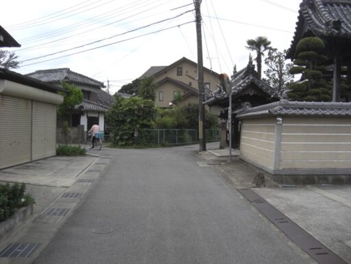 T字路で行き止まりですが、その西側に真宗大谷派姫路船場別本徳寺があります。寺の東側の道は 室津道(室街道)でかつての西国大名の参勤交代の道として室津港との旧道があります。本徳寺はじめ室津道の街道資料にのせていますのでご参照してください