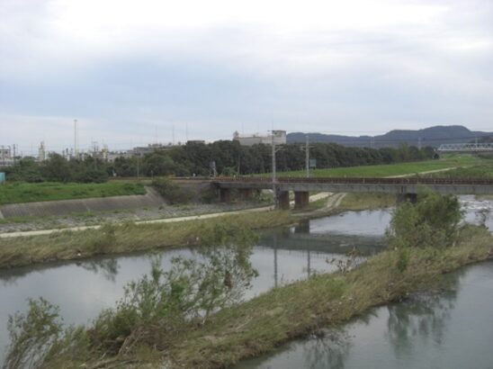 堤防を100m程南に進み、夢前川に架かる夢前橋を渡ります