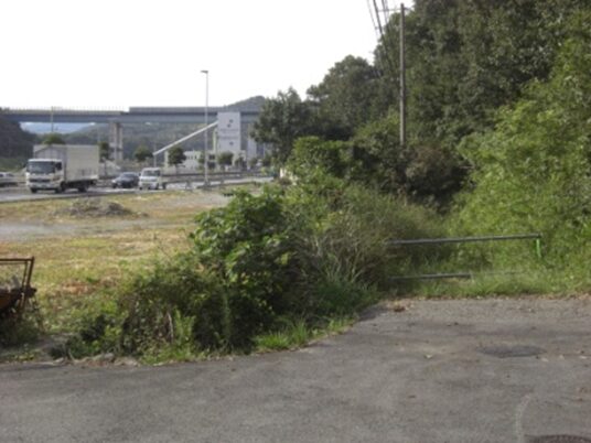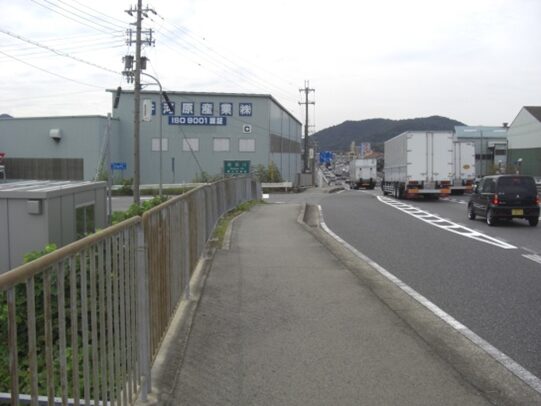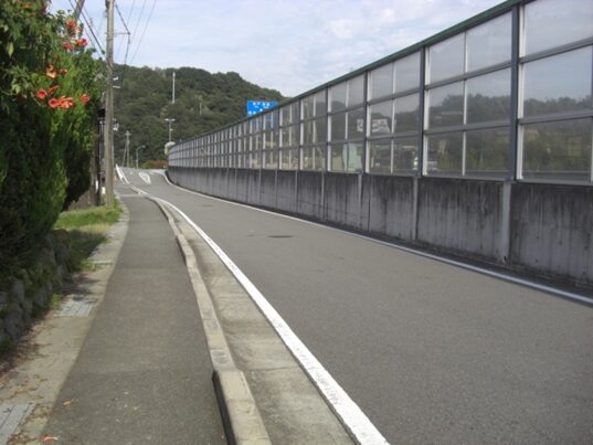 防音壁のある左の国道の側道を少し進みます、振り返ったところです。