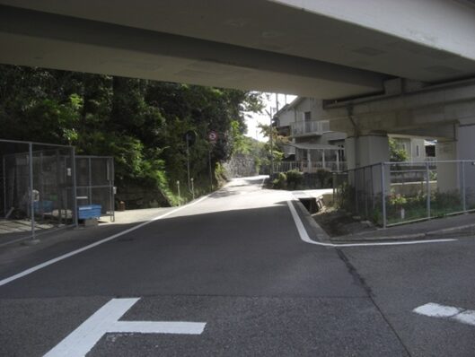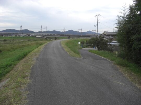 さらに110m程進むと道は分岐しますが道なりに左に進みますと、すぐ先の山陽新幹線の高架を潜ります