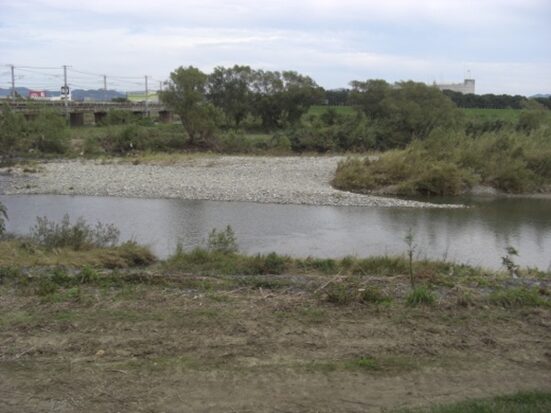 歩いてきた旧道を振り返ったところ、やがて矢野川に出ますので橋を渡らず手前の十字路を左に、川を右に見て進みました