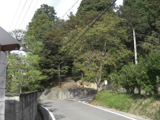 竜泉交差点から300m程進むと側道より右斜めに入る道を進みます