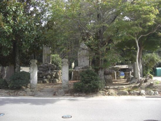 交差点を横断した右角に 道標 「圓光大師二十五番霊場 美作国・誕生寺道」 「左 備前金毘羅九州宮嶋 往来」 「すぐ 姫路 大阪 京 江戸 往還」 「右 因州 伯秋 昨州 雲州」 「岡山へ八二十リ一丁 廣嶋へ八六十リ三十三丁下関へ八百リ」安政二年の銘