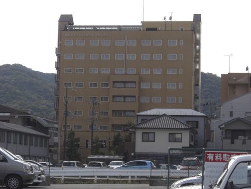 正面が相生駅すぐ左車が駐車しているところがホテルアネックスです