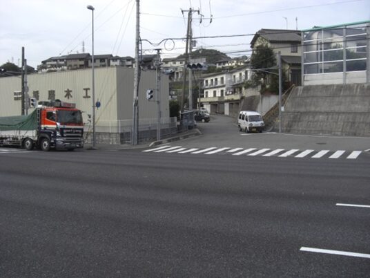 国道2号線の左に折れた菅原台信号交差点を横断します
