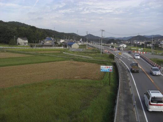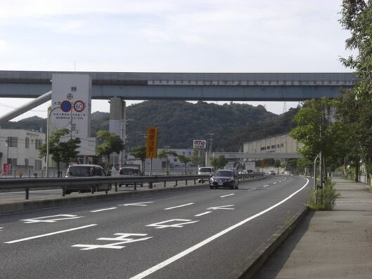 国道2号線の緩やかな坂を登っていくと山陽自動車道の高架を潜ります