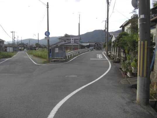 500m程歩くと左、国道からの道が合流して有年牟礼の畑集落に入ります
