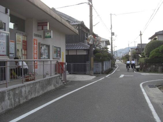 右に若狭野小学校、左に若狭野郵便局を過ぎます
