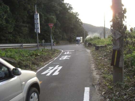 歩道もなく最大の注意をしながら国道の坂を登っていきます。せめて天下の国道2号線なのだから歩道でもあればいいのだが、多分この道を一般の人が歩くことを想定外のなのだろう。