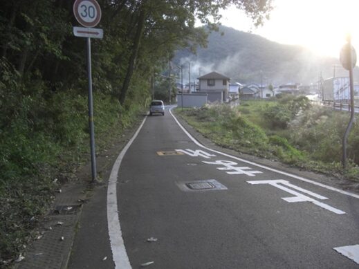 十字路から左に国道と並行して進む旧道を200m程進みます