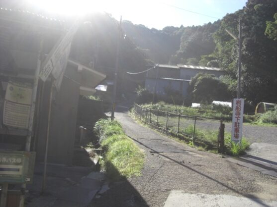 前方が開けて集落が見えてきた、岩船寺の門前付近