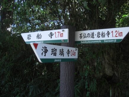 中世には沢山の寺があったという、数百年を経た今は、静かな山里に残っているのは、岩船寺と浄瑠璃寺だけとなっている。道筋には石仏や磨崖仏が多く刻まれている。