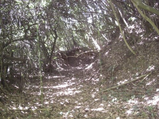 左に緩やかにカーブしながら東に進む、浄瑠璃寺奥之院不動明王へは約10分ほど足場のあれた急斜面の山道を谷に下る