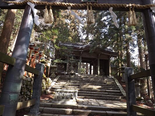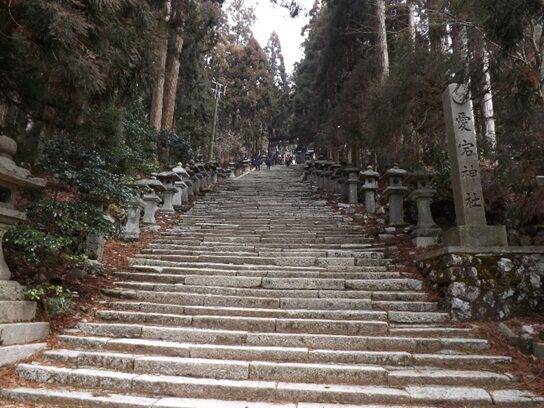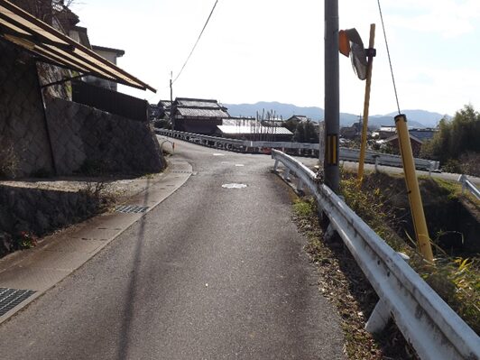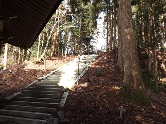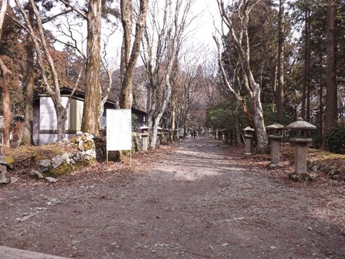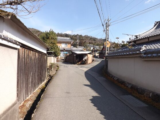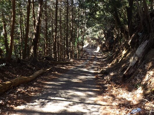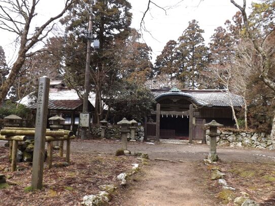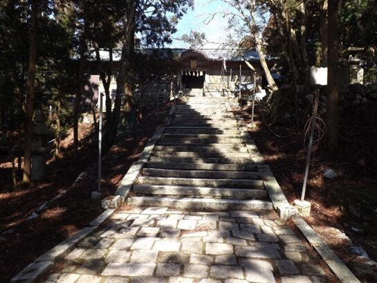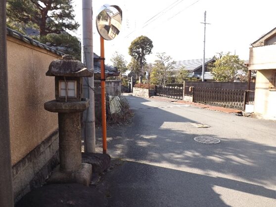 明智光秀も連歌の会の前後に神社に参拝をして戦勝祈願をしたことでしょう。再び石段を下り、先ほどの道標の前の道を進む