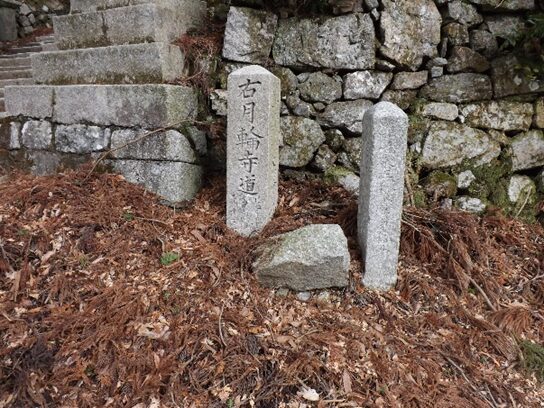 「右月輪寺道 是より十三丁 寺より清滝へ下二十五丁」明和五年(1768)銘「あなうへのみち・・・」元禄三年(1690)銘(穴太寺)