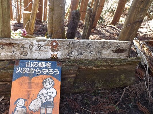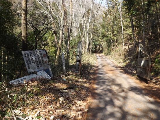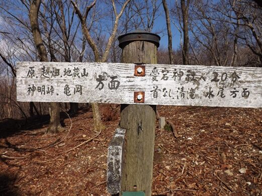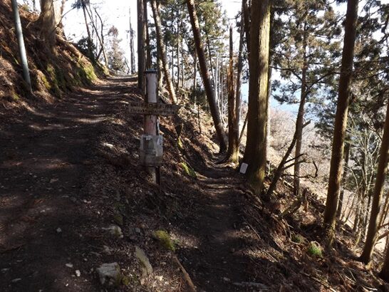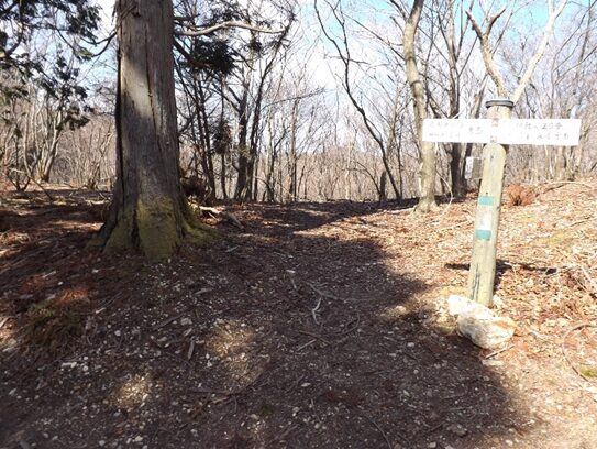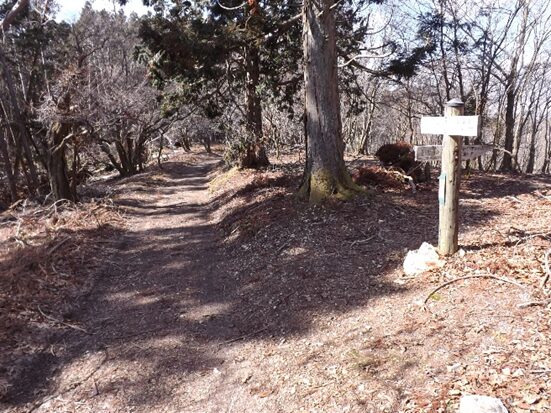 右に進むと 竜ヶ岳(標高921m)登山口で案内標識が建っています
