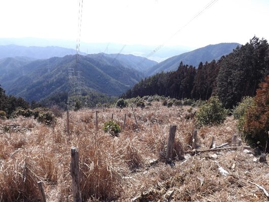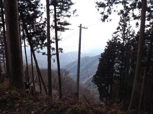 右に鉄塔があるところで開けますが、里までまだまだのようです