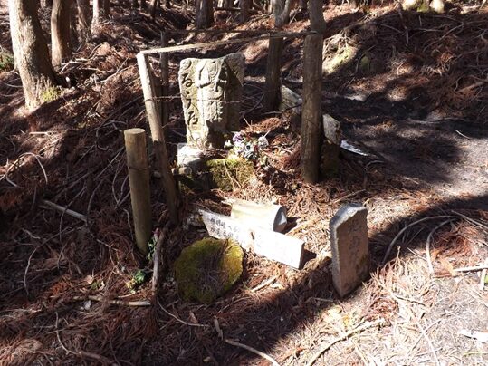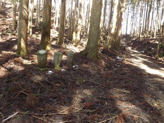 200m程進むと左に 三基の石仏 昔遭難でもして亡くなられたのか