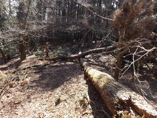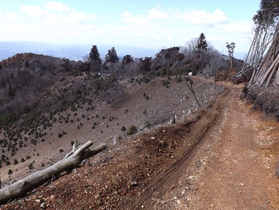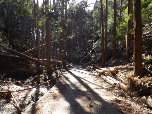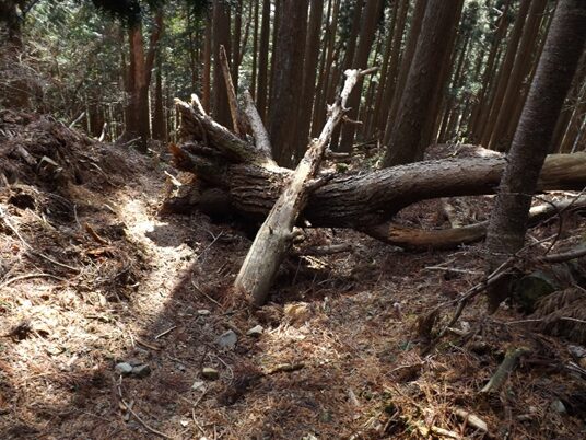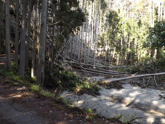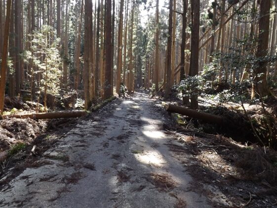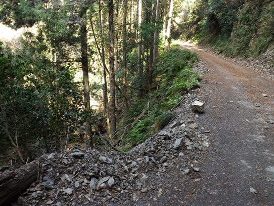 山の斜面は非常に倒木で荒れています。ここにきて車両通行止めがよくわかりました