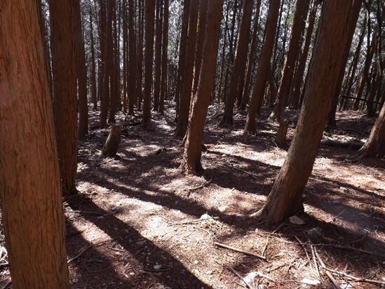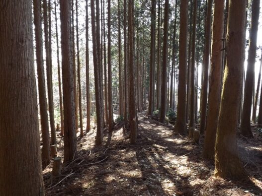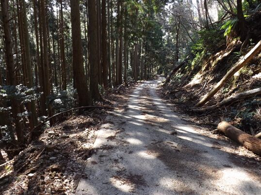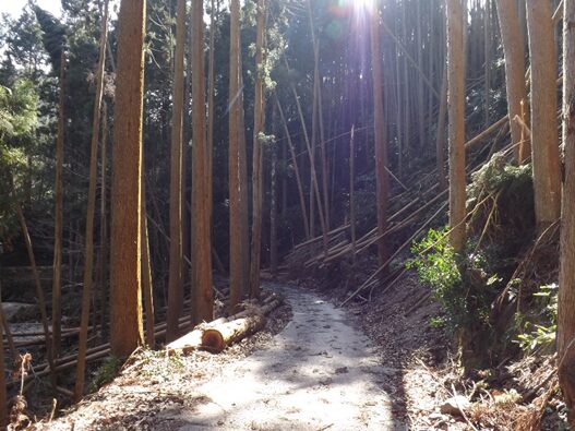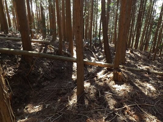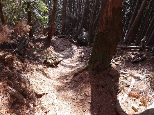 凹になった道を下ります。木の手入れが行き届いているので日が差し込み、高い木ですが明るいので助かります