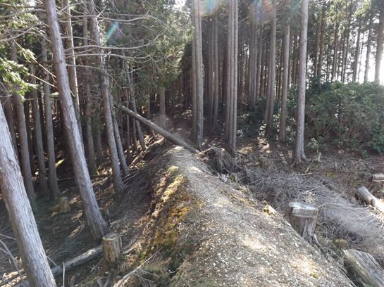 快適な山道で右は深い斜面です光秀が歩いたとしたら、もっと厳しい山道であっただろうと思いうかべる