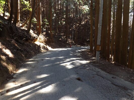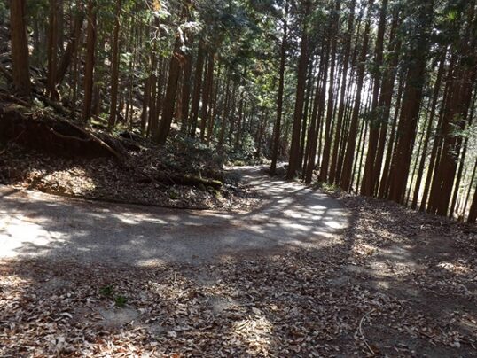 前方が開けたところで左にカーブします、この付近で右に分岐している道があるのですがよくわかりませんでしたが、嵯峨樒原への細い山道です。