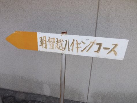 やがて突当りを右に折れます。左から 明智越の道 が合流してきます