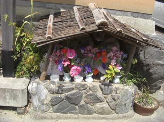 嵐山高雄パークウエイの高架道路を潜る手前左に 将軍地蔵菩薩の祠