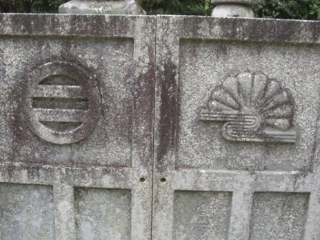 石扉には立派な家紋が刻まれている足利家と楠木家の紋