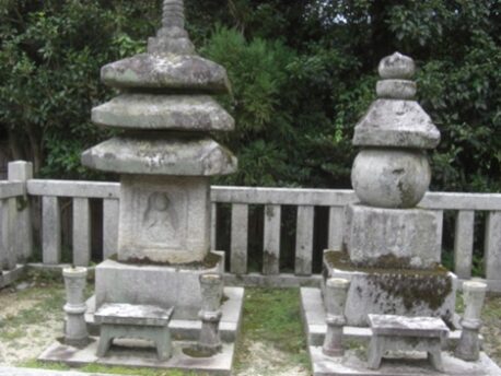 石の柵に囲まれて二基の石塔が立つ。五輪塔は楠木正行の首塚三層石塔は足利義詮の墓。足利二代将軍の墓にしては小さいが、義詮の人柄、徳の大きさが反対に偲ばれるとの評価がある