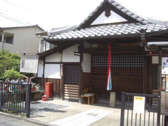 右に 慈眼堂(中院観音) と境内の 地蔵 藤原定家は中院に山荘を構え、嵯峨の自然を愛ししばしばこの地を訪れた。本尊は木造千手観音立像