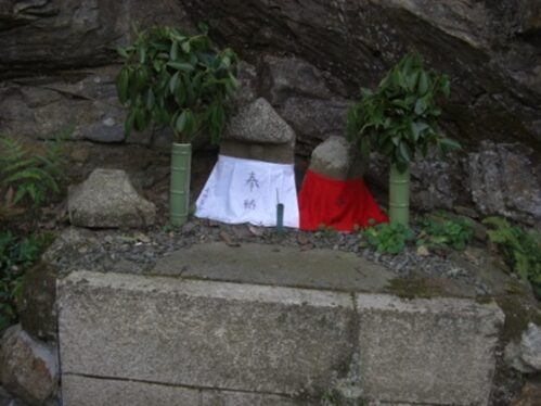 整備された石段を登る石段の手前に2つの お地蔵さん