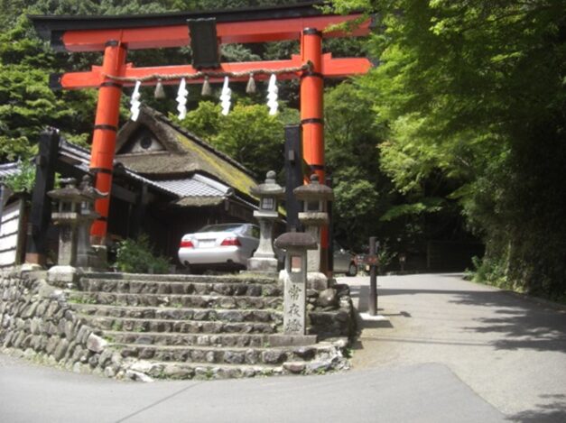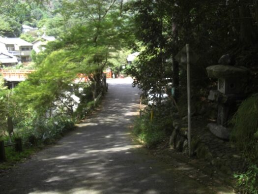 石段途中、月輪寺や空也滝 へ分岐する道 右の灯篭の袂に