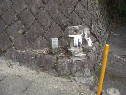 茶屋は明治のはじめには十九軒を数えたという。沿道各所に残る石垣はその名残りだそうです。