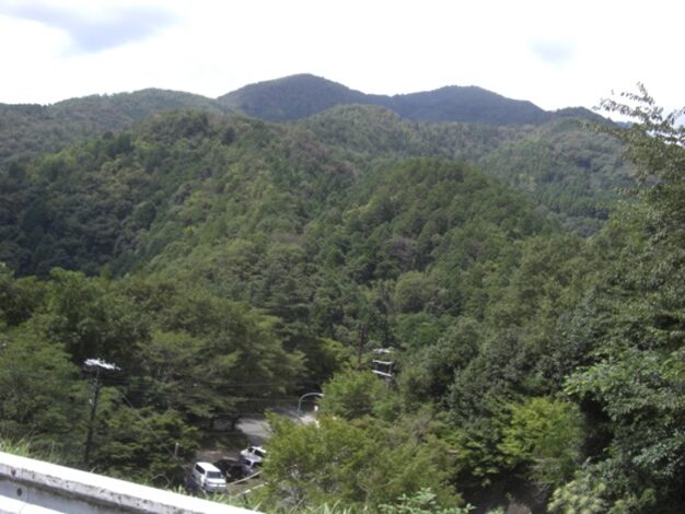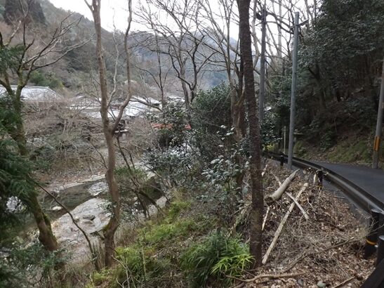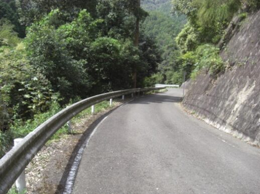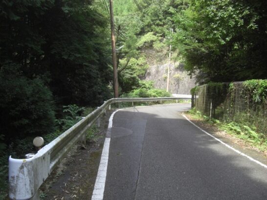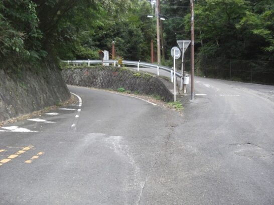 清滝バス停でここまでバス便がある、向かって左から峠を越えて来たところを振り返る
