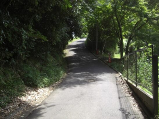 茶屋跡を右に見て、左にカーブしながら坂を登ります