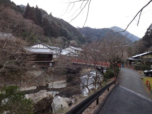 清瀧川に架かる渡猿橋を渡り対岸のかつての、清瀧宿の集落が見えます