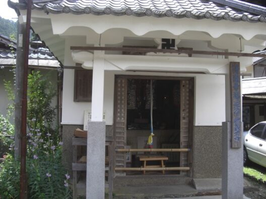 左の お地蔵さんの祠 の横に 嵯峨小学校清瀧分教場跡の立て看板 以前はこのような場所にも学校があったのだ驚き