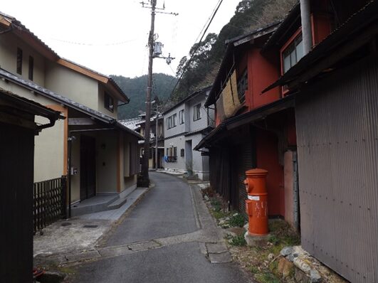 渡猿橋を渡ると、鍵屋、中屋、伊賀屋など往時の旅籠、茶屋で賑わった宿場を進む。