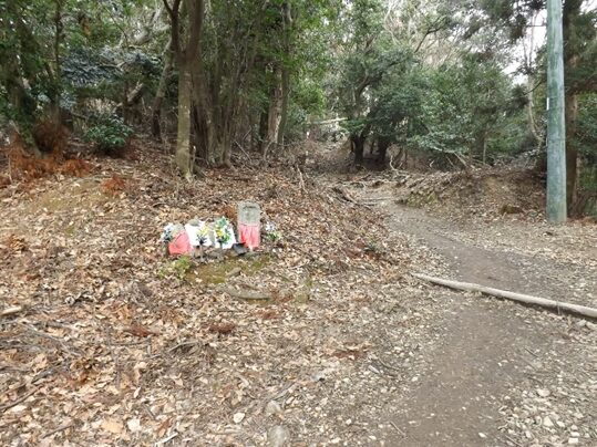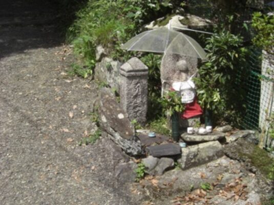 更に緩やかな坂を上っていくと左に お地蔵さん