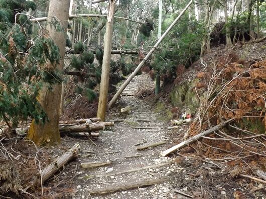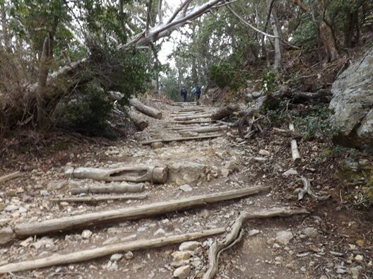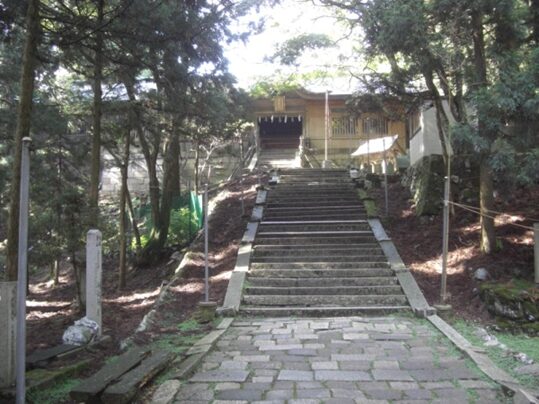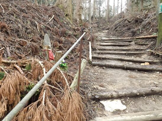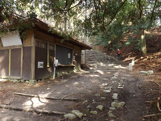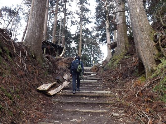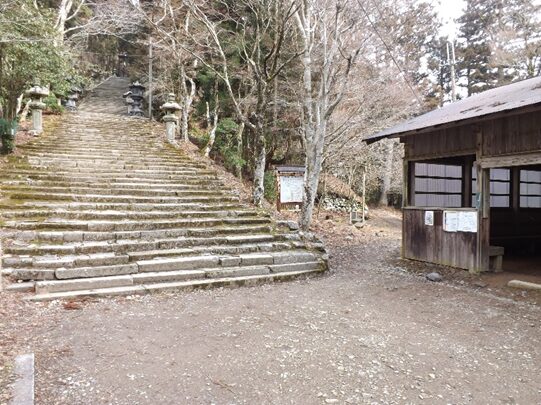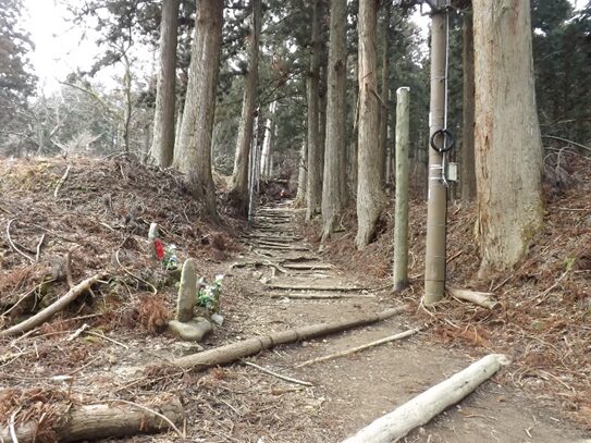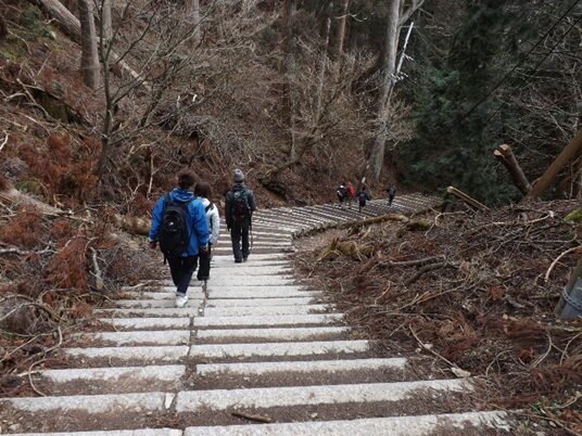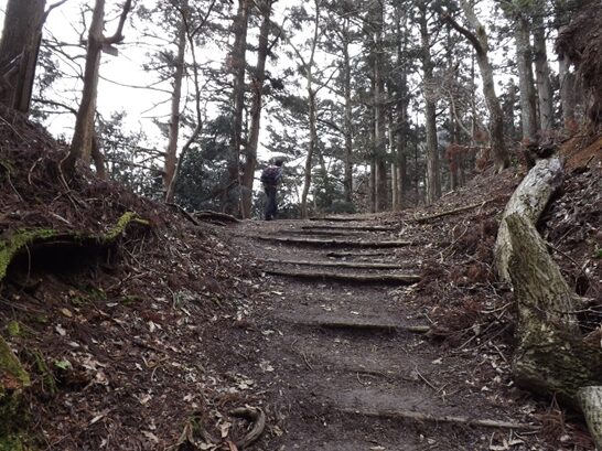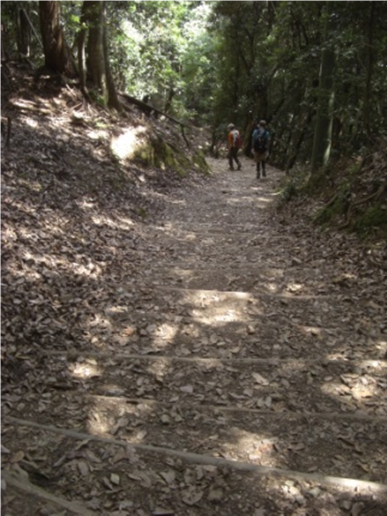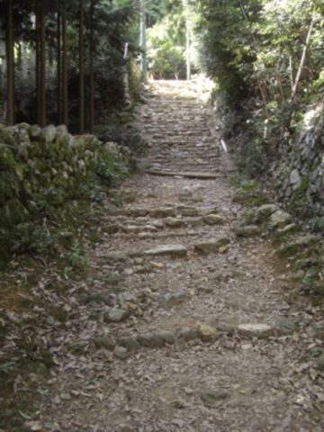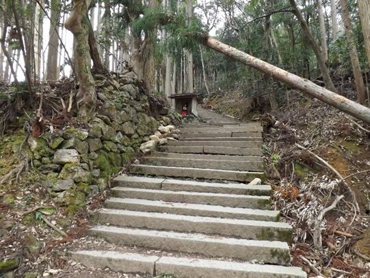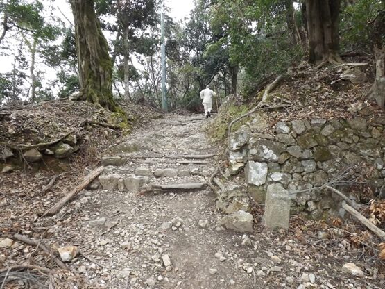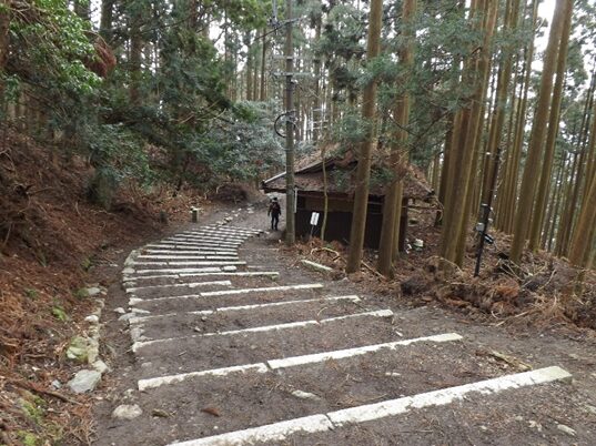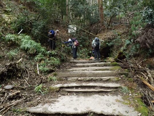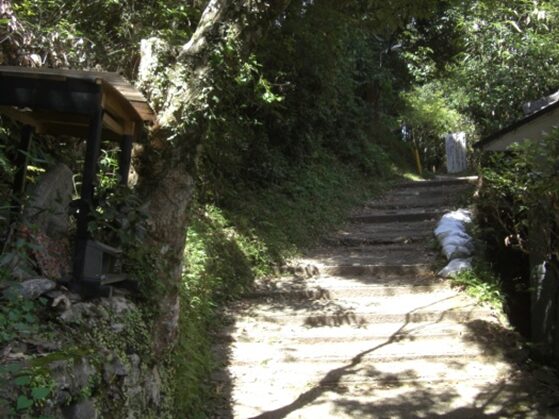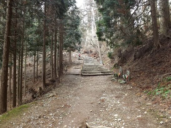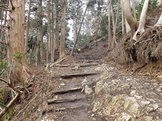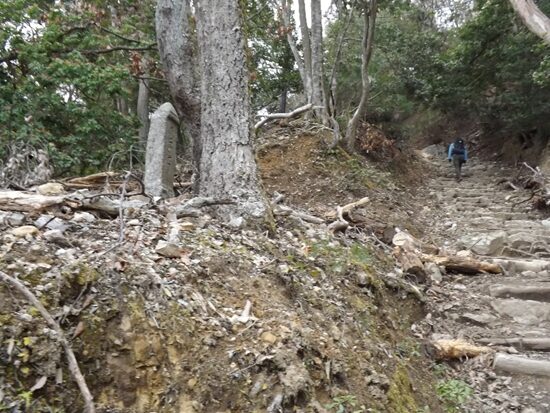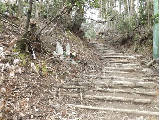 かなりきつい登り道の石段結構登山者が朝から見ます