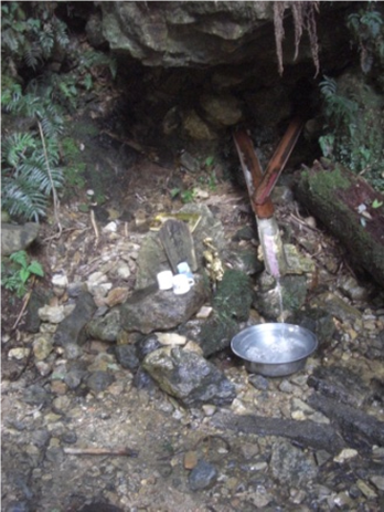 右角に湧水が流れています、参拝者の人々の喉を潤したことでしょう